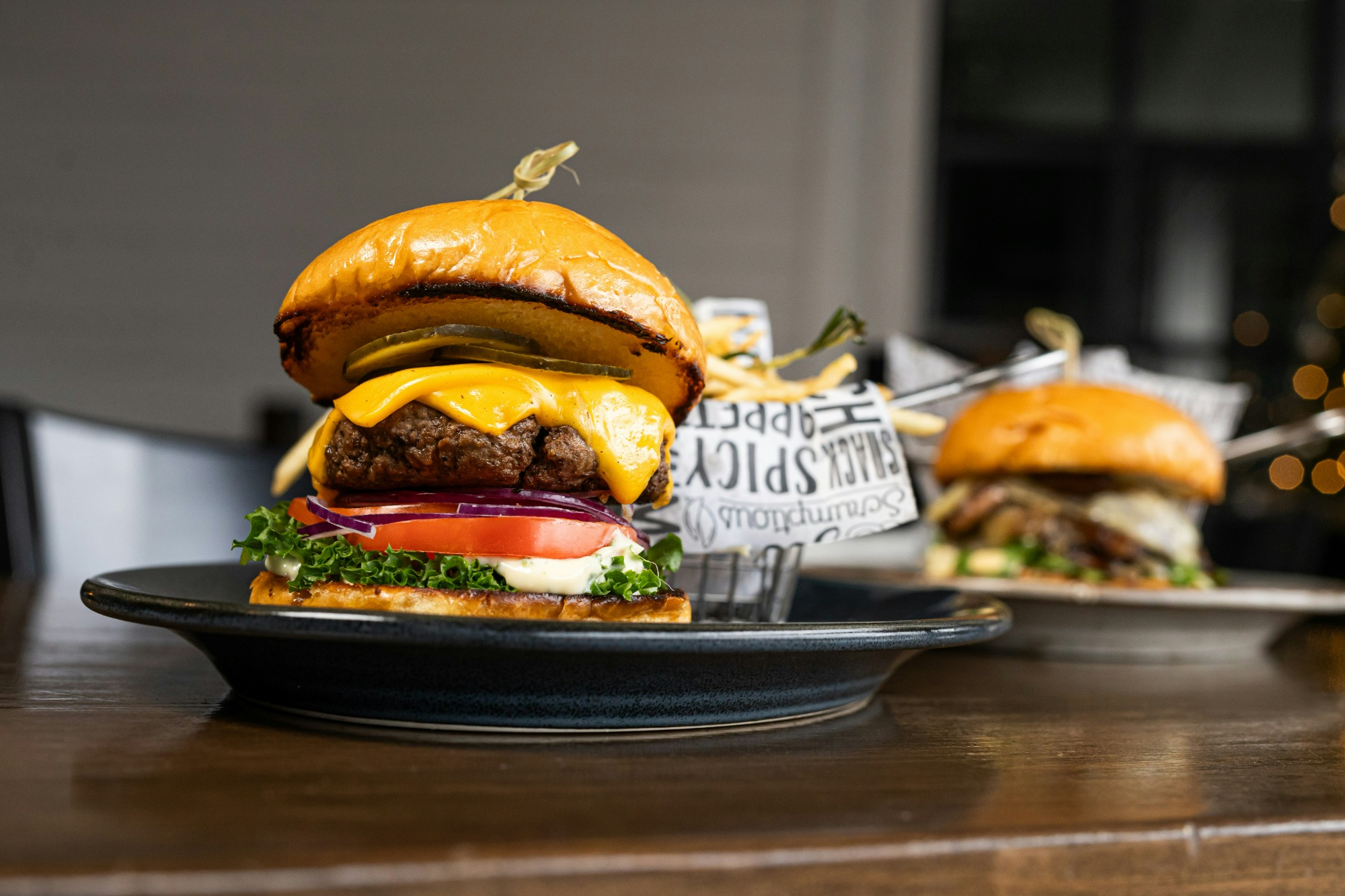 soczysta wołowina, topiony ser cheddar, sałata lodowa, pomidor, ogórek kiszony, sos do wyboru -